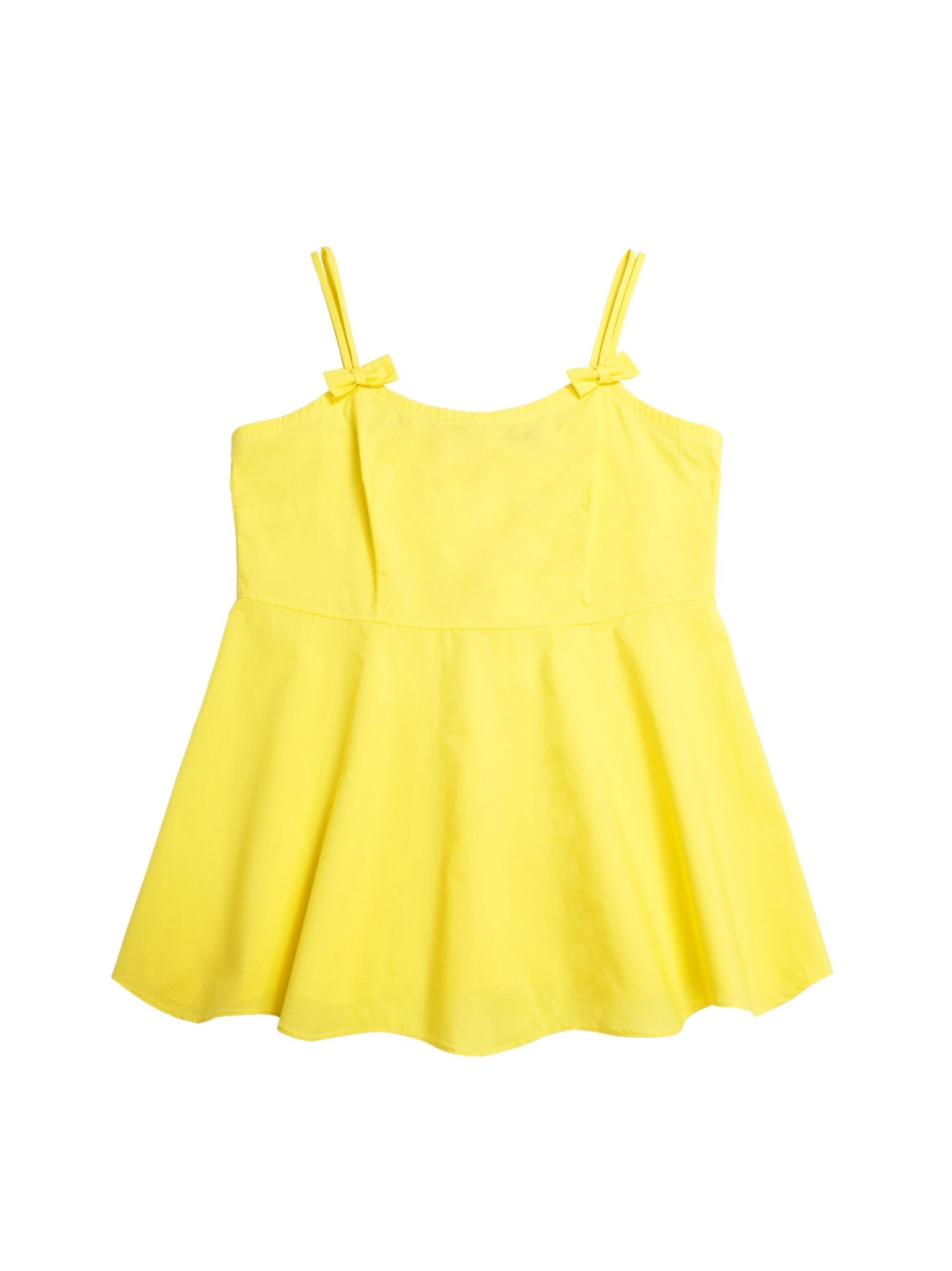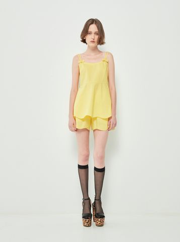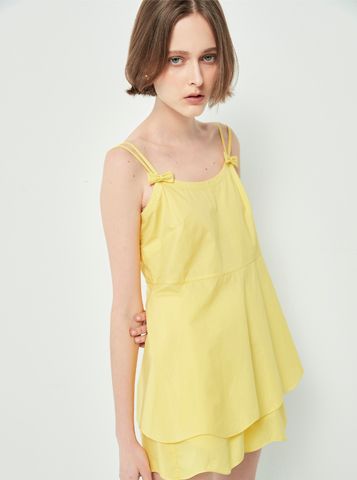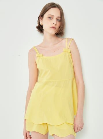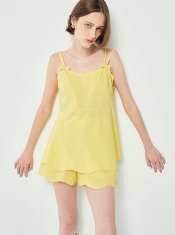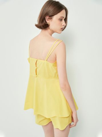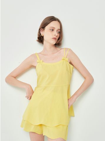 Áo có thiết kế 2 dây đôi tạo sự độc đáo, có thêm 2 nơ ở phần trên và phần lai áo được may đường gợn sóng tạo cảm giác mềm mại và tinh tế.