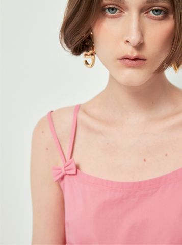 Áo có thiết kế 2 dây đôi tạo sự độc đáo, có thêm 2 nơ ở phần trên và phần lai áo được may đường gợn sóng tạo cảm giác mềm mại và tinh tế.