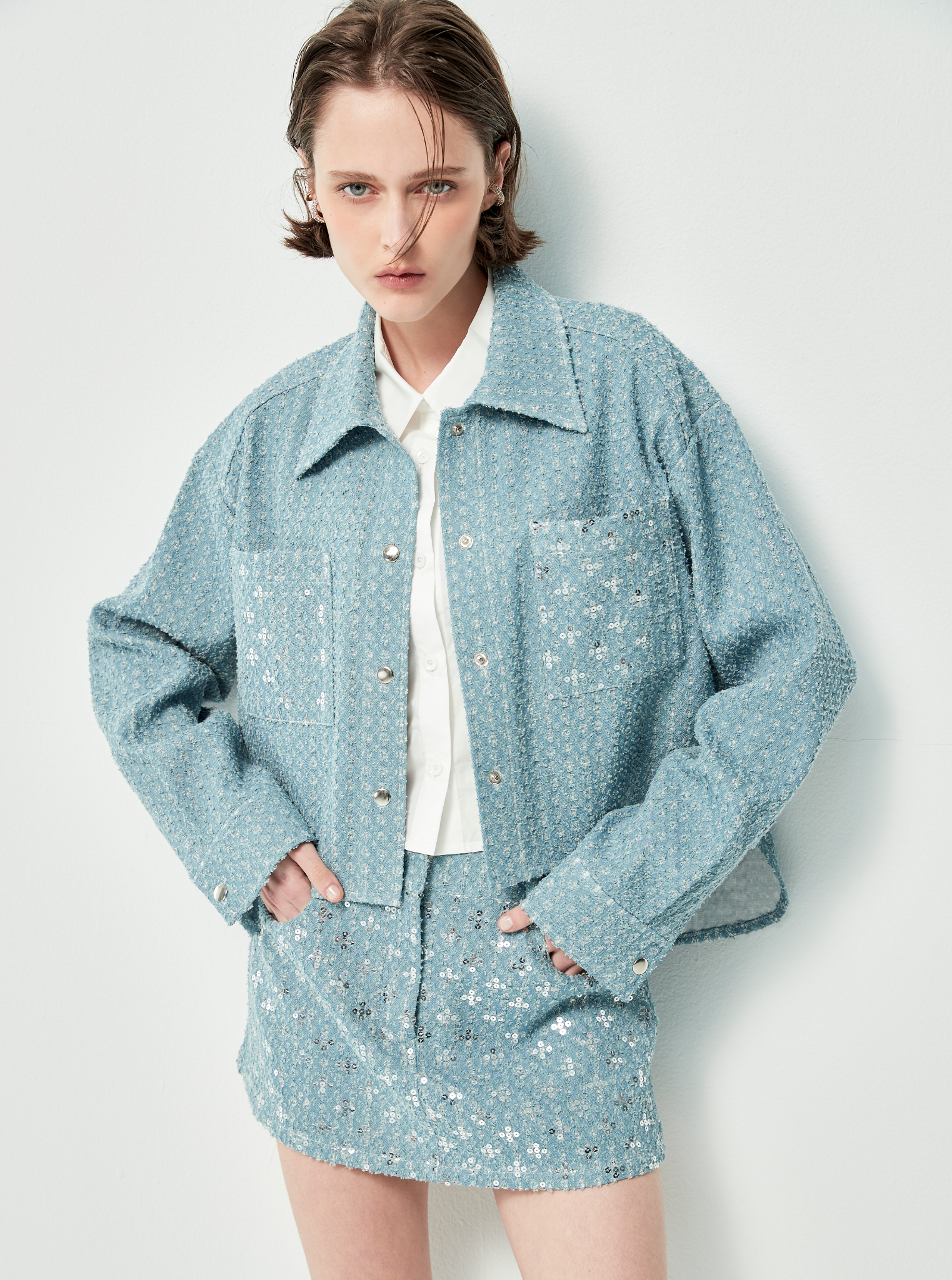 Điểm nổi bật của áo nằm ở phần túi hộp lớn đối xứng hai bên ngực – chi tiết này mang hơi hướng utility (cảm hứng từ trang phục công năng), nhưng lại được xử lý tinh tế để không phá vỡ tổng thể thanh lịch. Tay áo dài, cổ điển với cổ bẻ chuẩn sơ mi, phù hợp để mix được cả trong phong cách casual lẫn semi-formal.