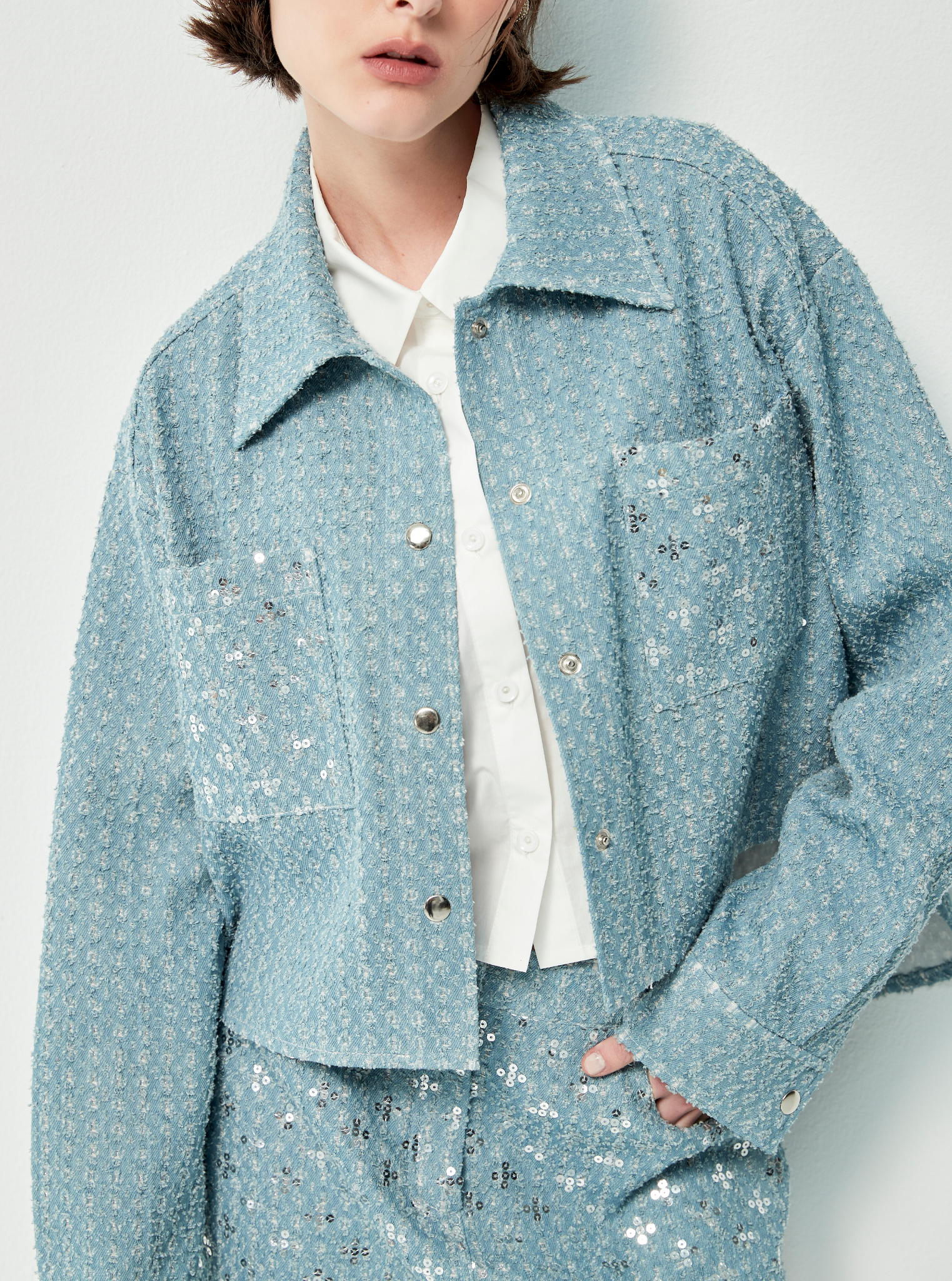 Điểm nổi bật của áo nằm ở phần túi hộp lớn đối xứng hai bên ngực – chi tiết này mang hơi hướng utility (cảm hứng từ trang phục công năng), nhưng lại được xử lý tinh tế để không phá vỡ tổng thể thanh lịch. Tay áo dài, cổ điển với cổ bẻ chuẩn sơ mi, phù hợp để mix được cả trong phong cách casual lẫn semi-formal.