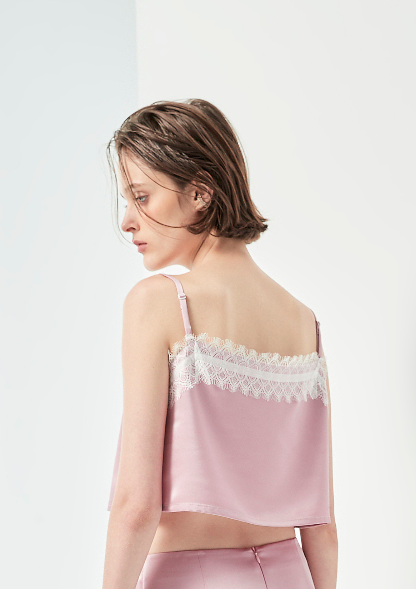 • Ren trắng được đính quanh viền ngực và viền nách tạo điểm nhấn duyên dáng.