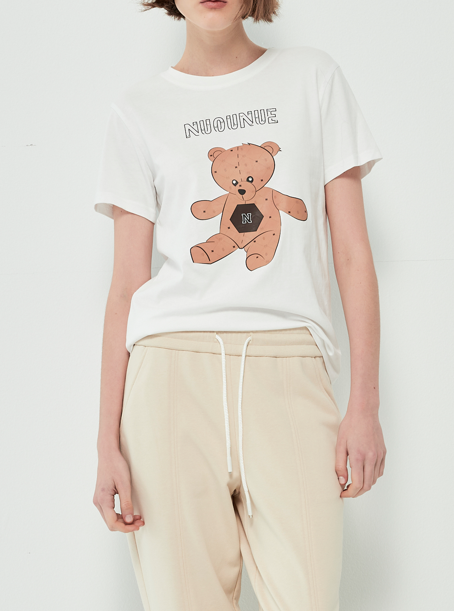 Sự kết hợp giữa form áo basic hiện đại và họa tiết gấu nâu ngộ nghĩnh đã tạo nên một thiết kế vừa thân thiện, vừa thời trang
