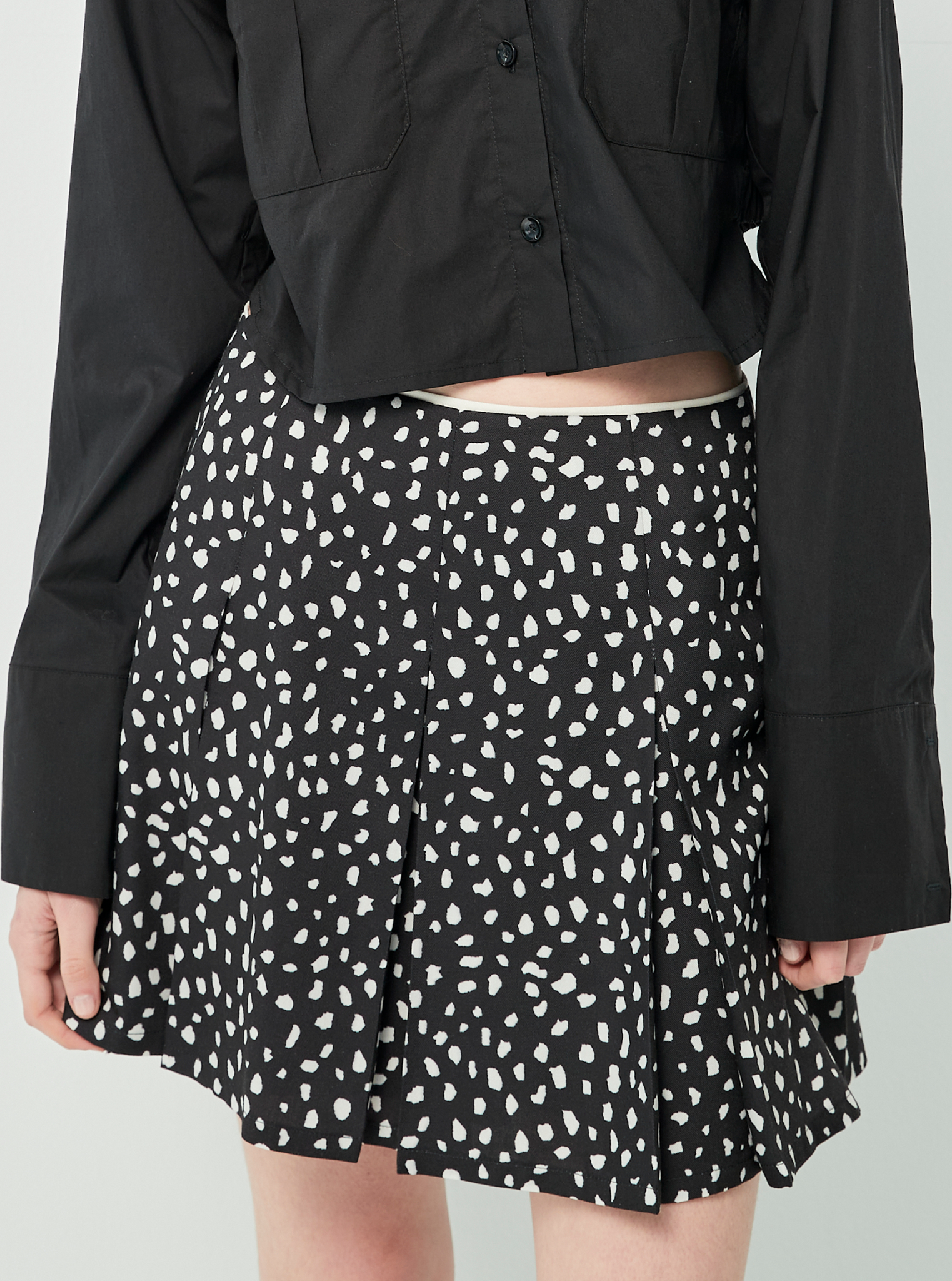 Họa tiết: Nền váy màu đen, họa tiết là các đốm trắng ngẫu nhiên – gợi cảm giác như họa tiết da báo cách điệu, hoặc kiểu chấm phá nghệ thuật.