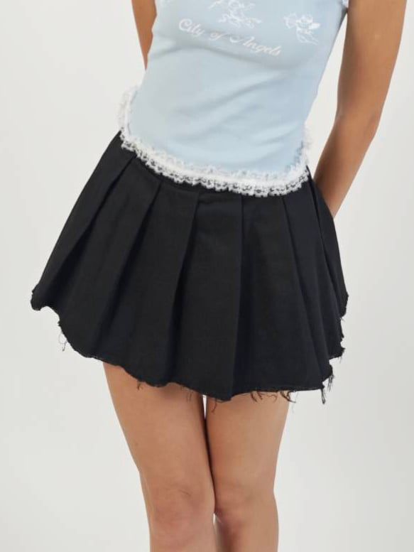 Chiếc chân váy jean mang phong cách năng động với dáng xòe nhẹ, xếp ly tinh tế giúp tôn dáng và tạo độ bồng bềnh tự nhiên. Thiết kế cạp váy điểm nhấn bằng khuyên kim loại hiện đại, kết hợp đường cắt gấu tua rua cá tính, mang lại nét phá cách trẻ trung. Dễ dàng mix cùng croptop, áo phông hay sơ mi để tạo nhiều outfit từ năng động đến sành điệu, phù hợp đi chơi, dạo phố hay hẹn hò.