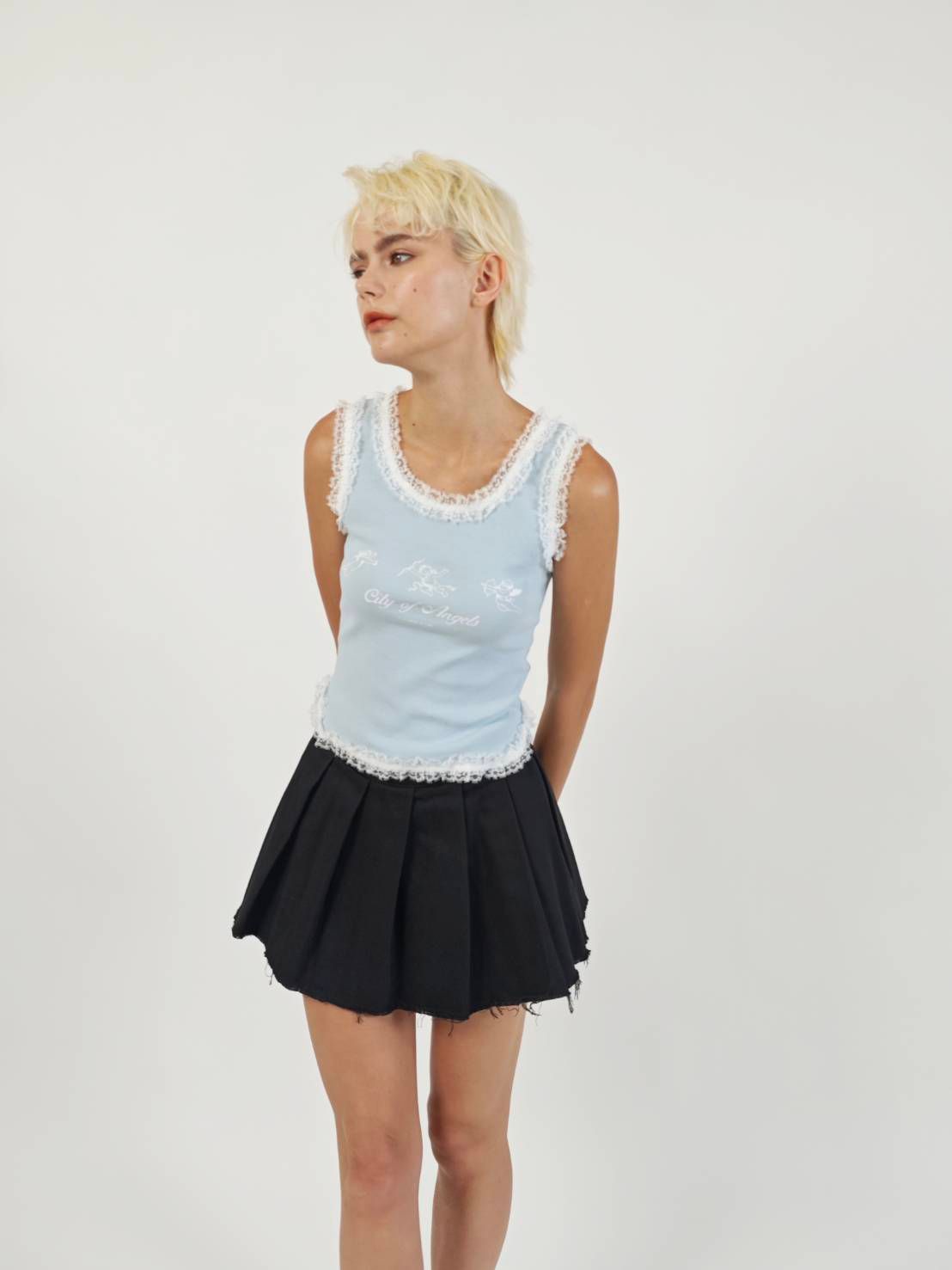 Chân váy xếp ly.