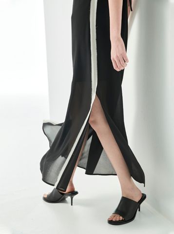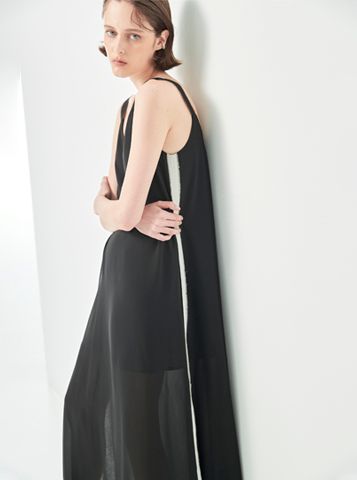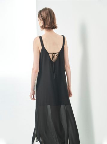 Chiếc váy dài dáng suông được thiết kế theo phong cách tối giản nhưng đầy quyến rũ. Chất liệu lụa mềm mại, nhẹ và mát, tạo cảm giác bay bổng khi di chuyển. Phần lưng hở kết hợp dây đan tinh tế là điểm nhấn nổi bật, tôn lên đường cong và mang lại vẻ đẹp gợi cảm nhưng vẫn thanh lịch.